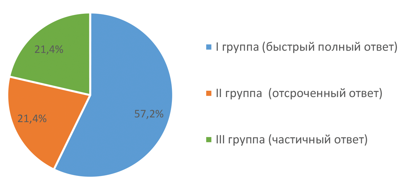 Сохранение тяжелого течения крапивницы на фоне увеличения дозы АГП2, в ряде случаев с потребностью в регулярном применении сГКС, являлось показанием для назначения омализумаба (третья линия терапии ХСК). Препарат использовался согласно инструкции по применению, в дозе 300 мг подкожно 1 раз в 4 нед, первичный курс терапии омализумабом составлял 6 мес. Все пациенты продолжали ведение дневника UAS7, в зависимости от уровня контроля ХСК и времени его достижения нами были выделены три группы пациентов. I группу составили больные с быстрым полным ответом на терапию омализумабом, во II группу были включены пациенты, которые демонстрировали достижение контроля над симптомами ХСК отсроченно, через 3–4 мес от начала терапии. Наконец, пациенты, которые имели частичный ответ на терапию омализумабом, составили III группу наблюдения.