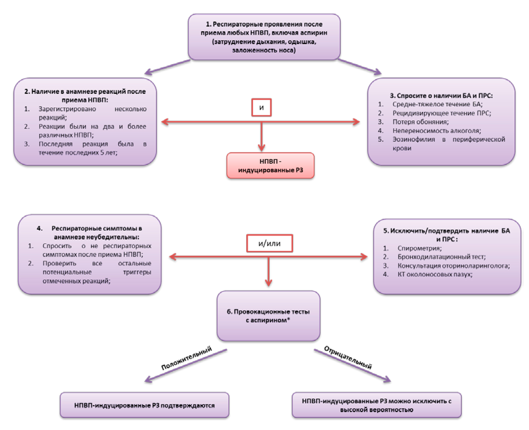 Рис. 5. Алгоритм диагностики НПВП-индуцированных РЗ. * – провокационные тесты с аспирином не сертифицированы на территории России