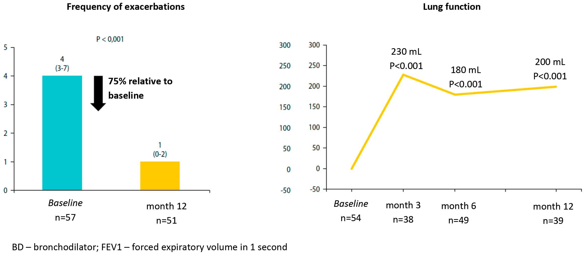 Fig. 7. A reduction in the frequency of exacerbations and improvement of the lung function (adapted from [34])