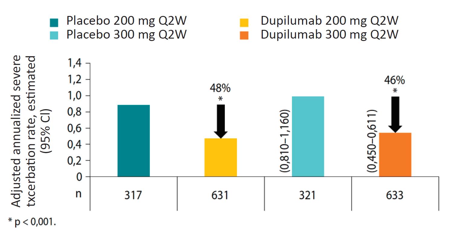 Fig. 5. Dupilumab significantly reduced the frequency of severe exacerbations in patients with uncontrolled persistent bronchial asthma (adapted from [30])
