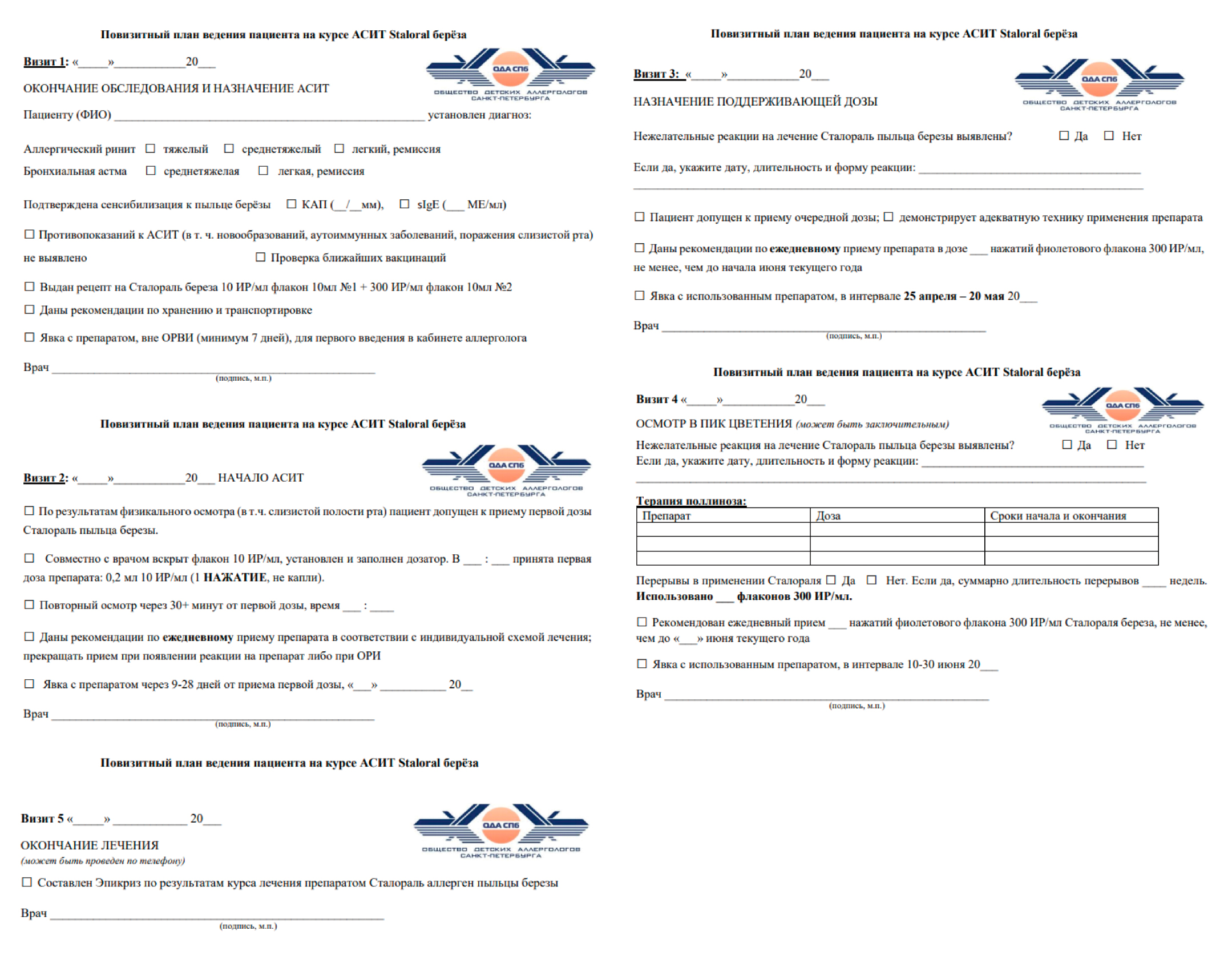 Для оптимизации проведения слАСИТ пыльцой березы разработан План ведения пациента (рис. 1).
