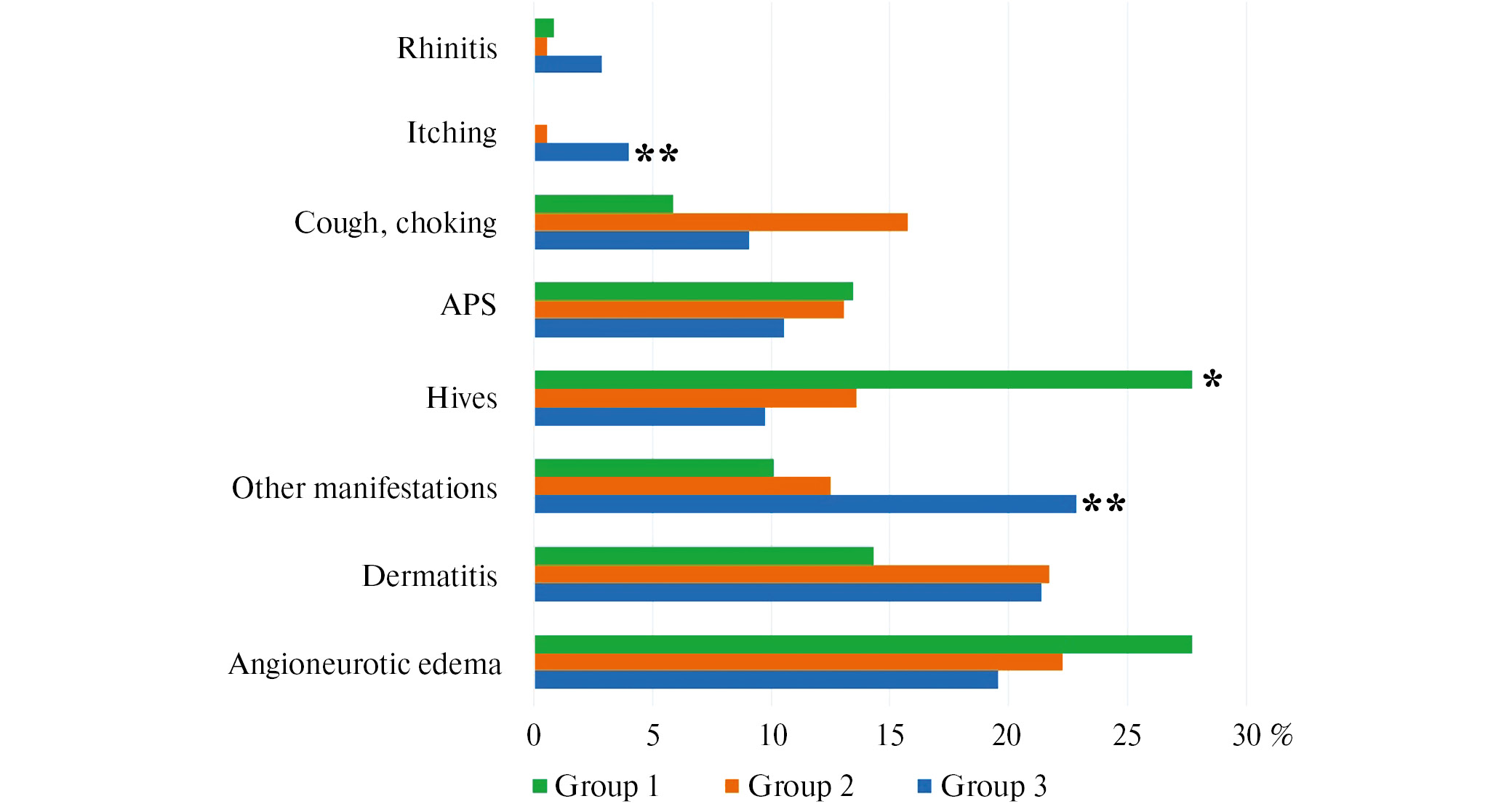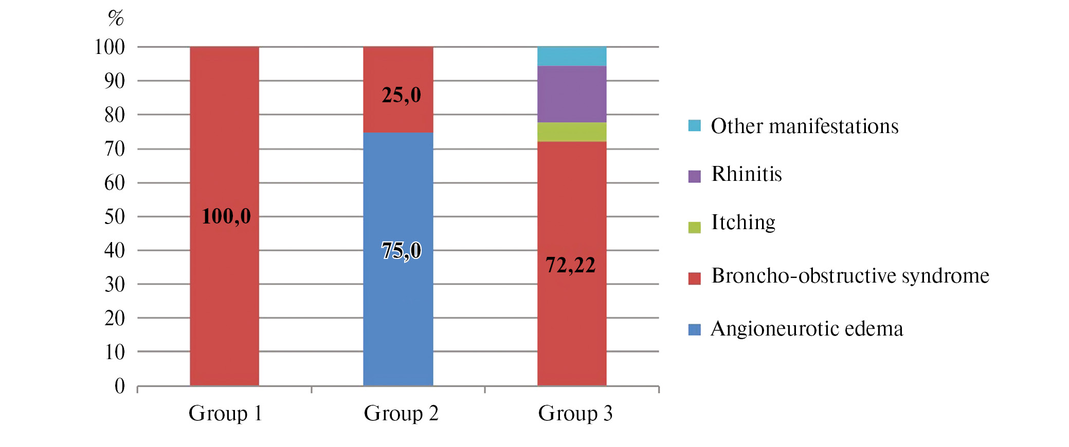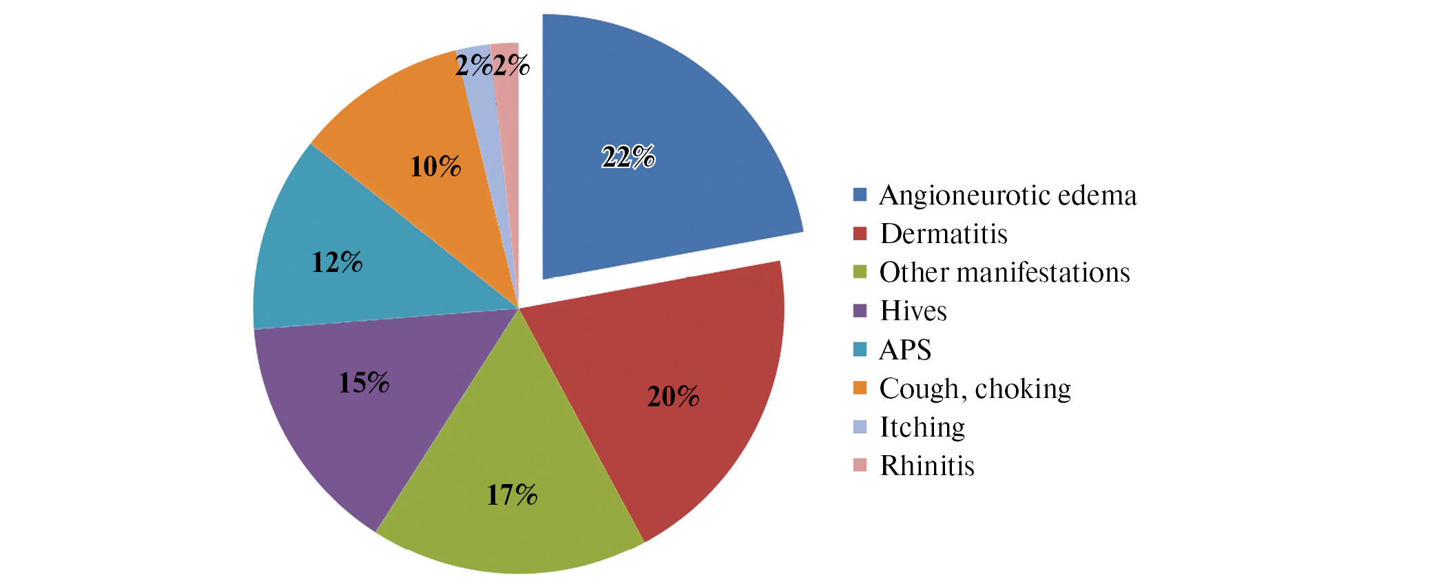 Fig. 4. Structure of clinical manifestations of drug intolerance to angiotensin-converting enzyme inhibitors in all groups.