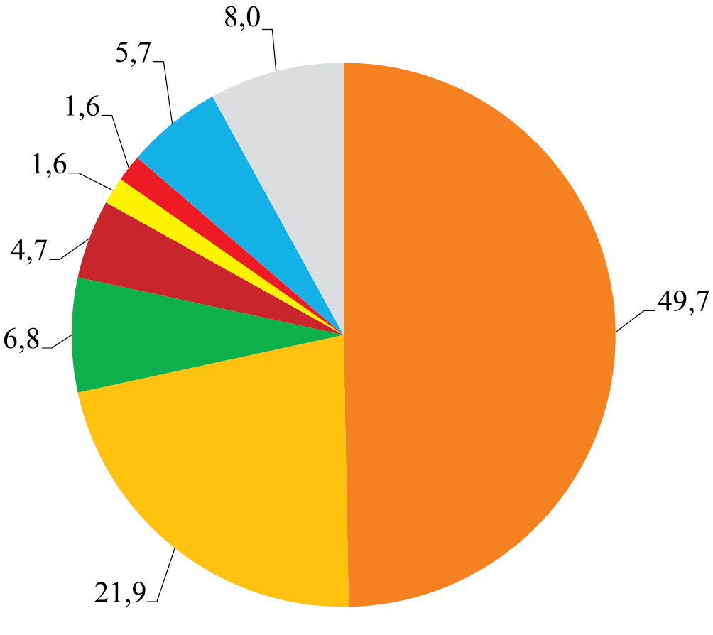 Fig. 1. Average annual aeropalinogram of the city of Yalta in 2011–2013, %.