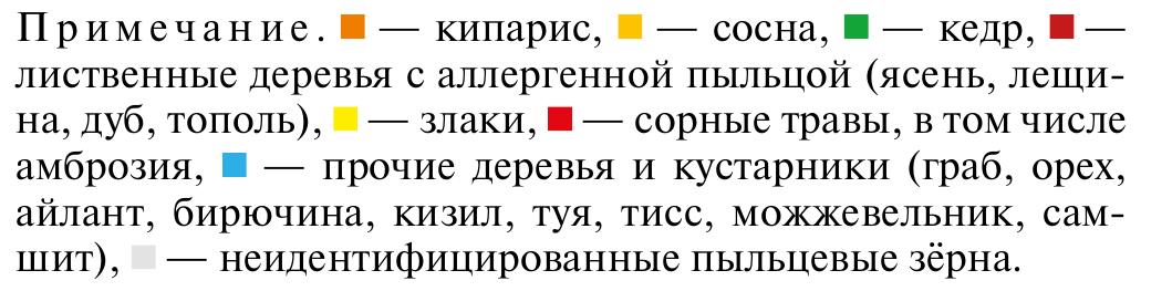 Authors’ contribution. S.N. Belyaeva ― development of the concept and design of the study, analysis of the research results and literary sources, editing of the text of the article; M.E. Pirogova ― processing and analysis of the results of microscopic examination of pollen, collection of literary sources, preparation and writing of the text of the article; M.I. Govorun ― microscopic study of pollen deposited on slides, identification of its taxonomic affiliation and calculation of its quantity. All authors made a substantial contributions to the development of the conception of the work, acquisition, analysis, interpretation of data for the work, the conduct of research, drafting and revising the work, final approval of the version to be published, read and approved the final version before publication, and agree to be responsible for all aspects of the work.