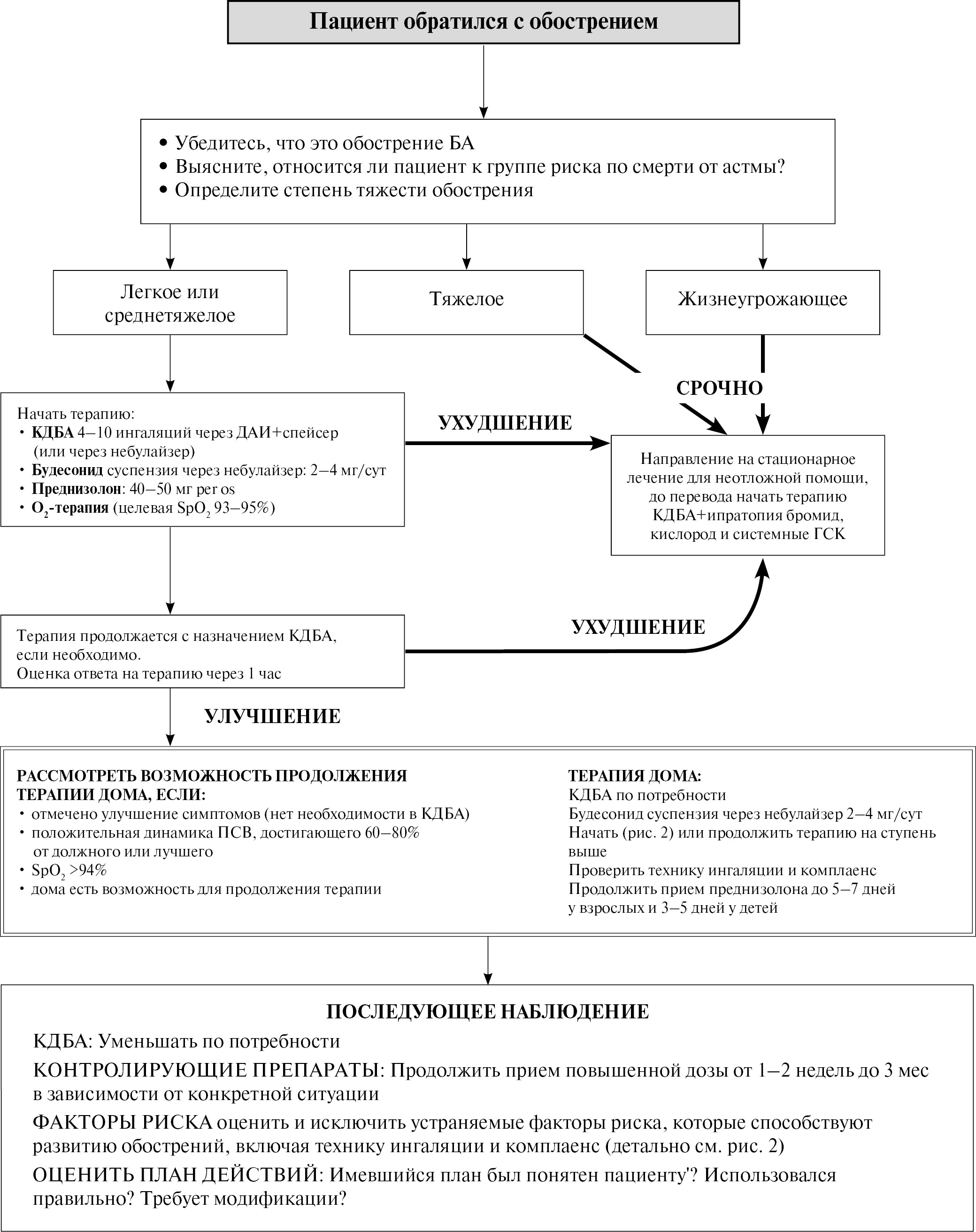 Обострение бронхиальной астмы ― эпизоды нарастающей одышки, кашля, свистящих хрипов или заложенности в грудной клетке, требующие изменений обычного режима терапии.
