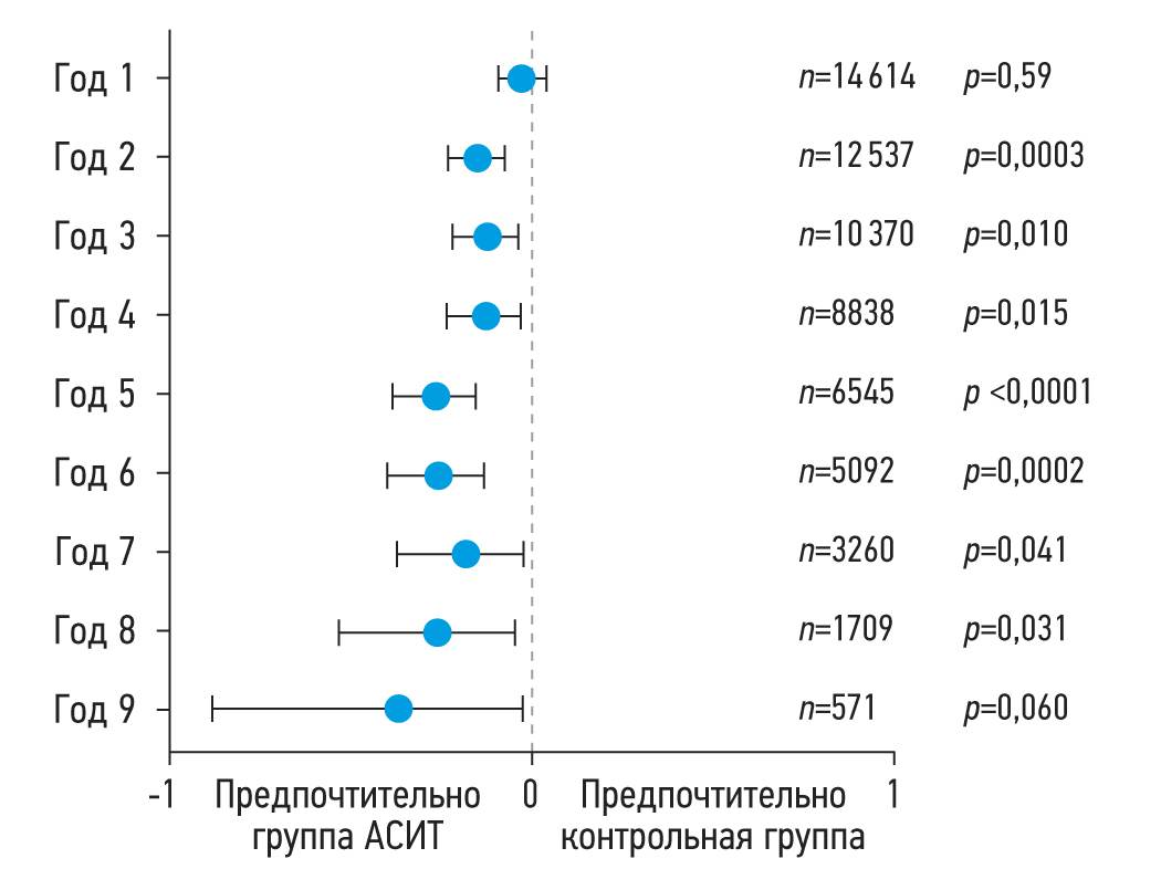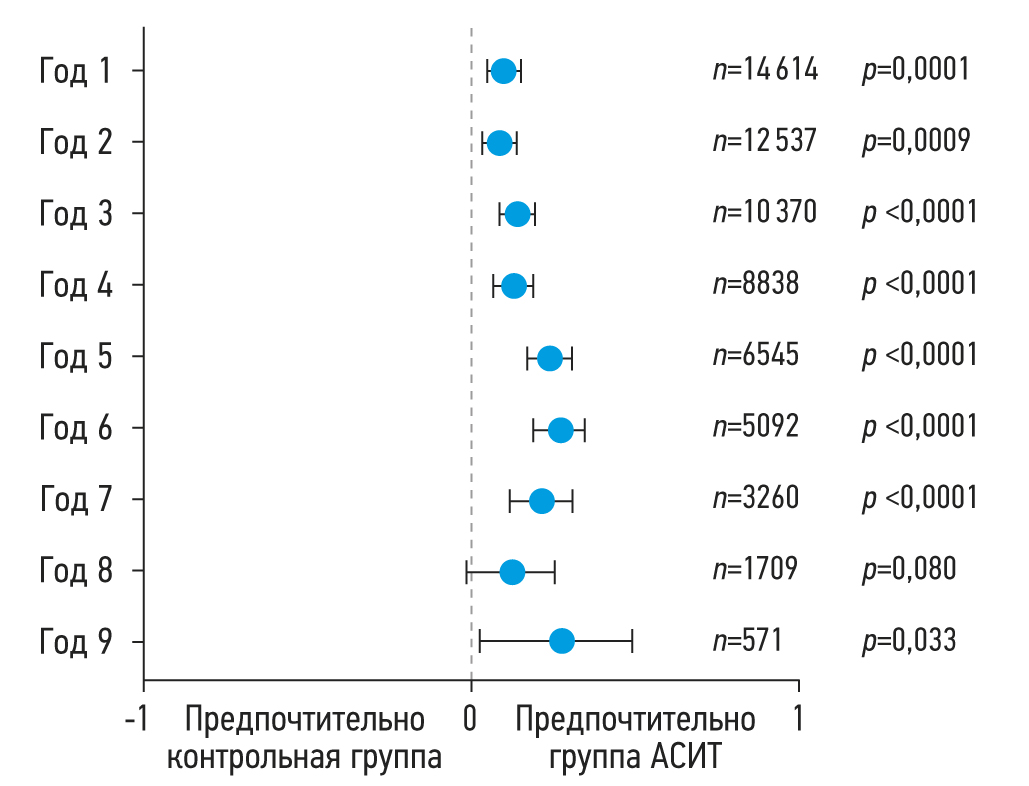 Note: АСИТ ― allergen-specific immunotherapy; ДИ ― confidence interval.