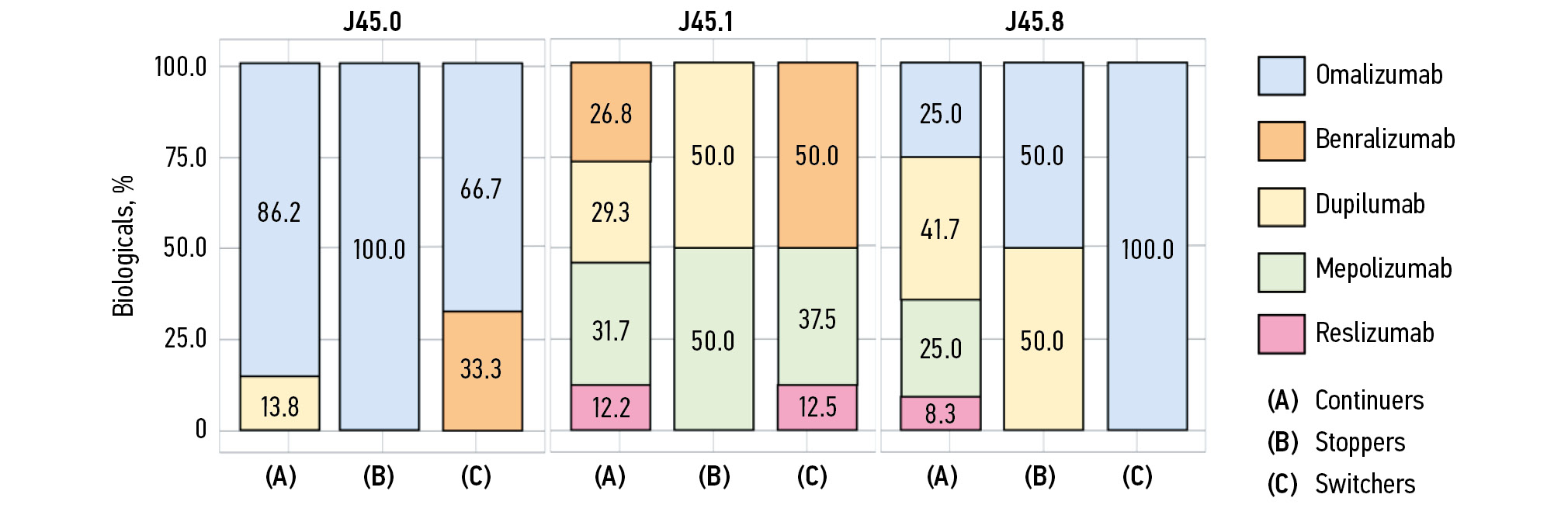 Albers et al. concluded that 27–37% of patients were eligible for treatment with omalizumab among patients eligible for treatment with mepolizumab (n=101) [18].