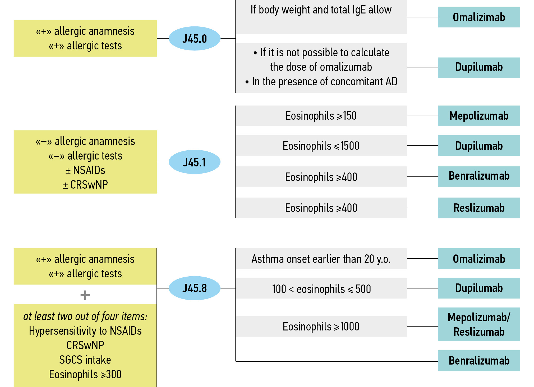 Fig. 4. Scheme for choosing an initial biologic for patients with severe bronchial asthma.