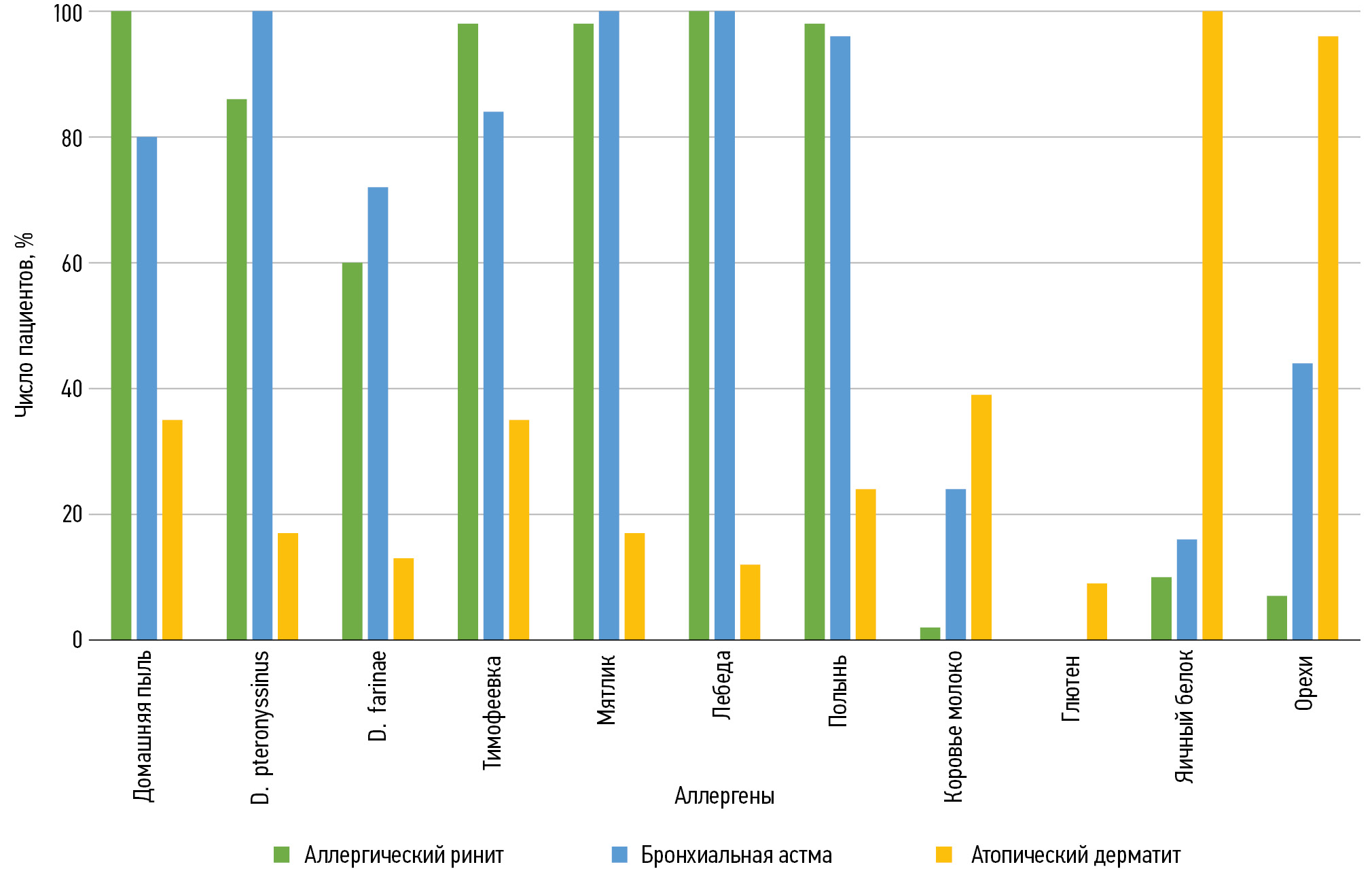 Вид аллергена | Число сенсибилизированных пациентов, % | ||