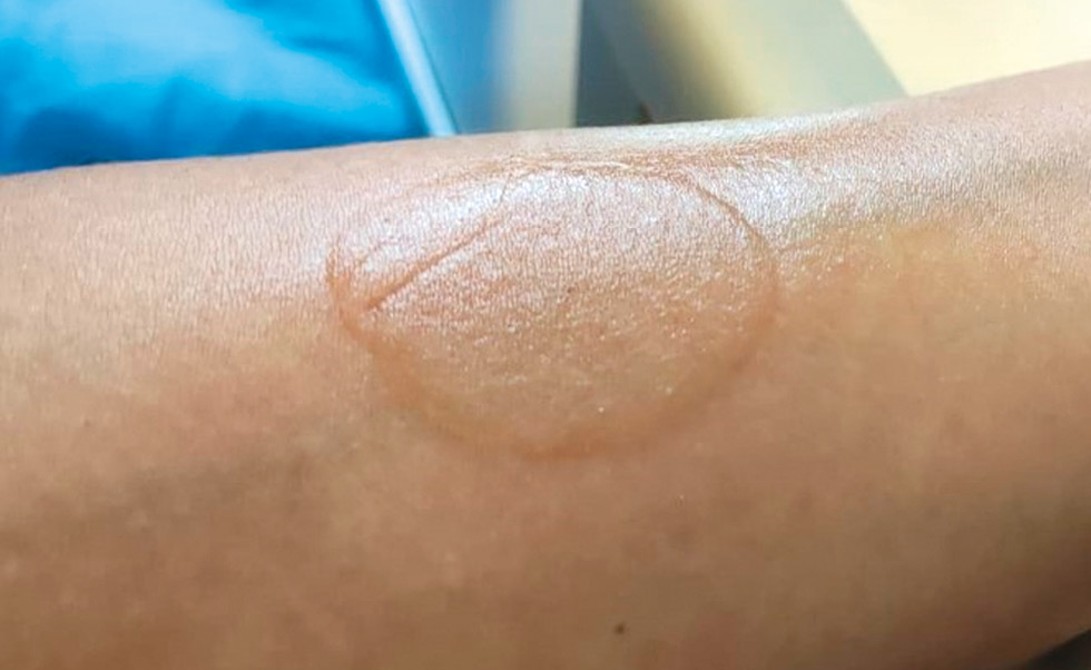 Fig. 4. Positive result of the ice cube testing. (Photo from the archive of the Moscow City Reseach and Practical Center of Allergology and Immunology Ministry of Healthcare of Moscow).