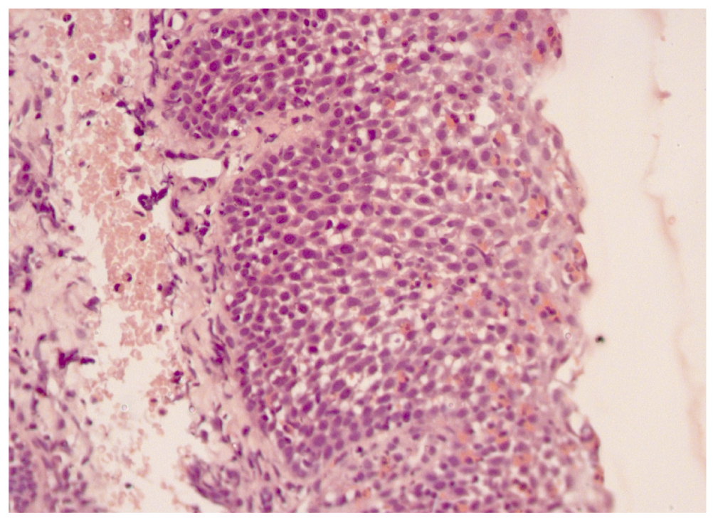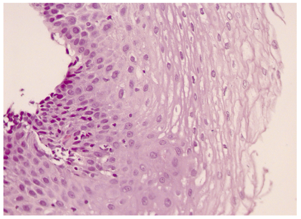 Рис. 1. Гистологическая картина слизистой оболочки пищевода до лечения.